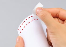 裏面から見て右端側で貼ります。中心に貼目がこないため、印刷の際に平均的に圧をかけることができ、きれいな印刷が可能です。