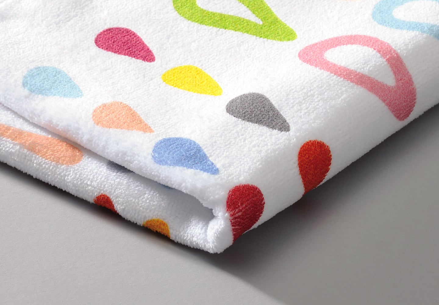 白インクを搭載しておりません。データ上の白い部分はプリントされず生地の色になりますのでご注意ください。