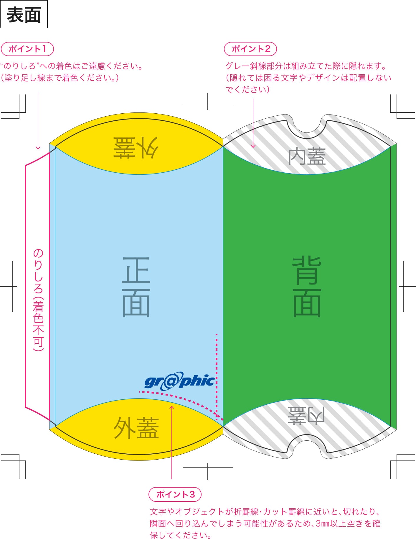 - デザインデータ作成の注意点は、形状により異なります。各形状の詳細ページより必ず内容をご確認の上データを作成してください。