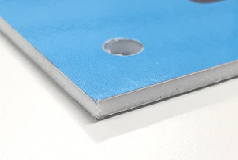 屋外長期パネルは非常に丈夫な商品ですので、孔開けや曲線のカットは困難なため、加工をご希望の場合は、自由カットのご利用をおすすめいたします。