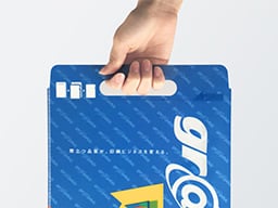 持ち手がミシン目で切り離せる、手提げバッグ型のクリアファイルです。展示会でのPRツールにおすすめです。