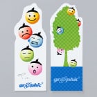 自由な形にカットできるしおりです(60mm×130mm以内)。PET素材なので水に強く、破れにくいのが特徴。実用グッズとして、またキャラクターやロゴをデザインすれば、保存版アイテムとしてノベルティなどに活用できます。