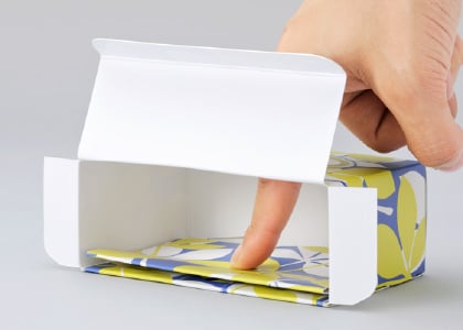 箱の中には、箱と一体化した紙製のバネが付いていて、ティッシュが少なくなっても、押し上げられて取り出しやすい構造になっています。