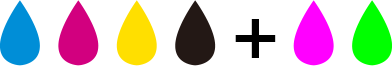 6色インクで色鮮やか。CMYK+2色でRGBを再現。