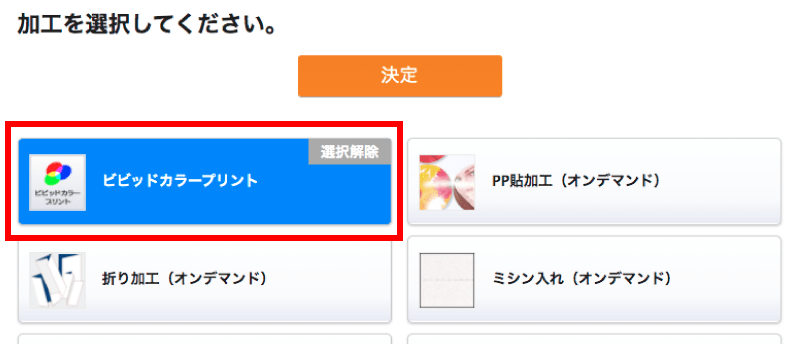 | 対応商品 | チラシ、名刺、ポストカード、冊子 等 | キャンバスプリント、 アクリルグッズ、 大判ポスター 等 | |||