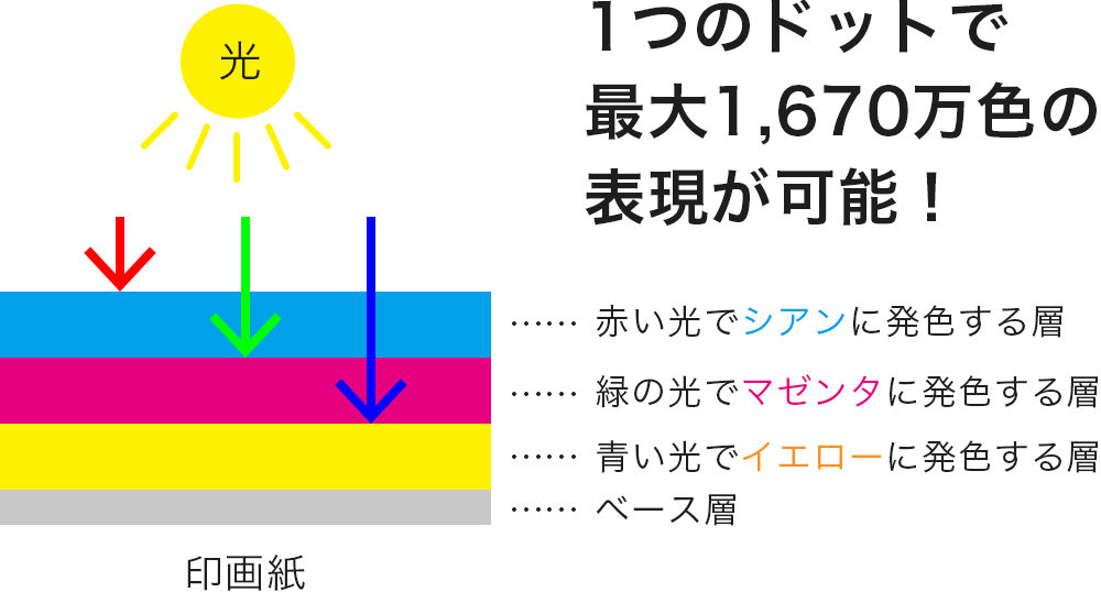 - 一つのドットで1,670万色の再現性があるため、階調表現がとても綺麗。