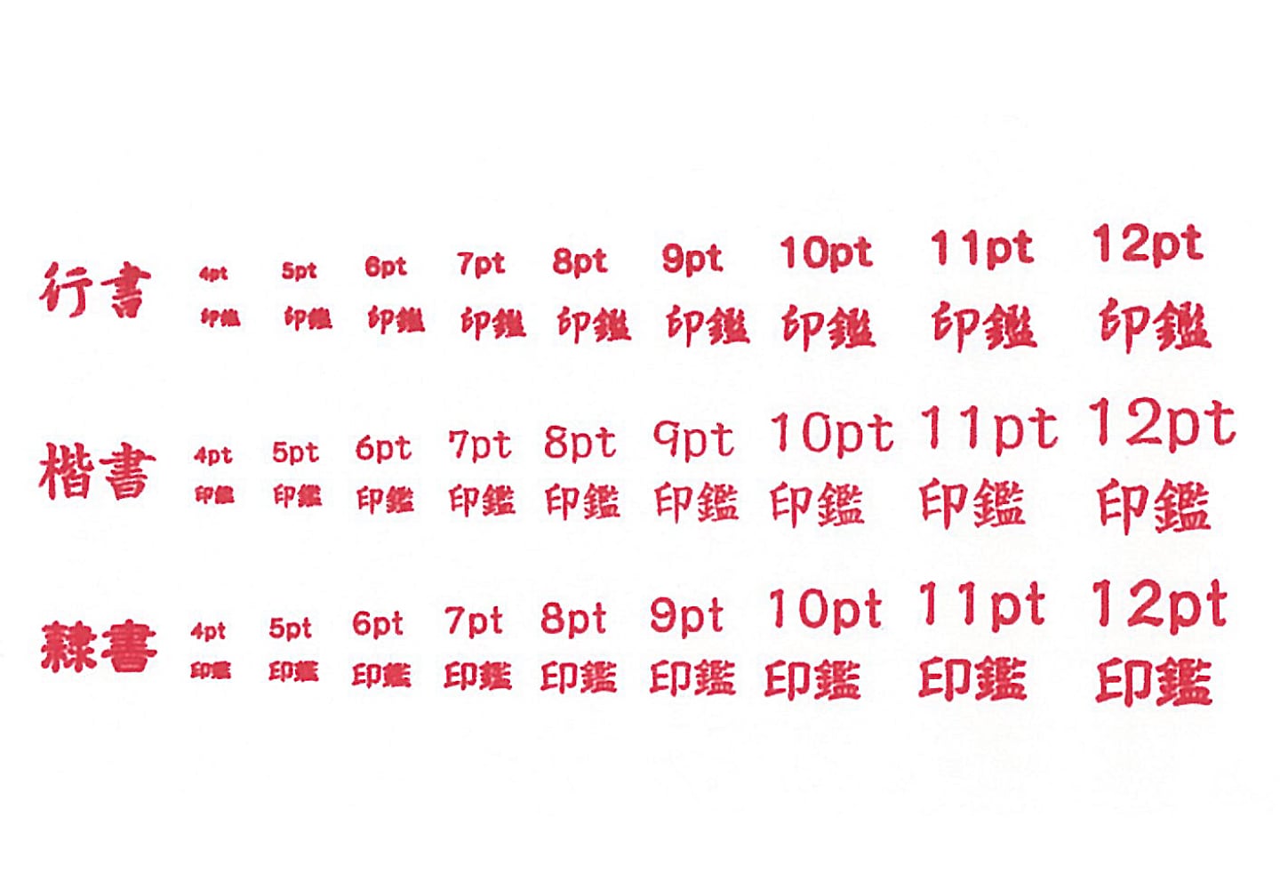 - 文字サイズが7.5pt(11級)以上であっても、極太ゴシックなどの太い書体は、線が太いため、文字が潰れてしまい使用できない場合があります。