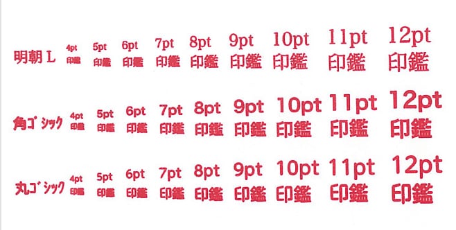 - 小さな文字等は潰れる可能性がございます。スタンプを押す強さや、画数、文字の太さ、大きさ等の様々な要素の影響を受けます。