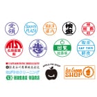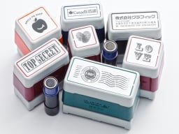ネーム印から日付印や組み合わせ印まで、印面サイズや本体カラーのバリエーションは計90種類以上。印面には氏名はもちろん、ロゴマークやイラストなど、自由なデザインで作成いただけます(入稿データのご作成が必要です)。