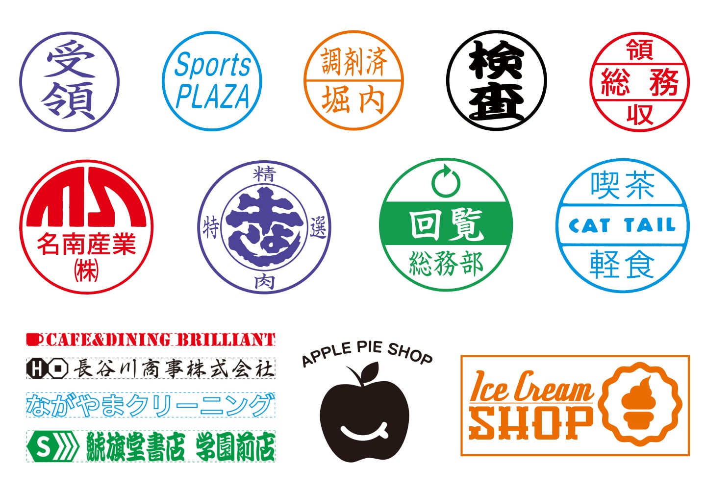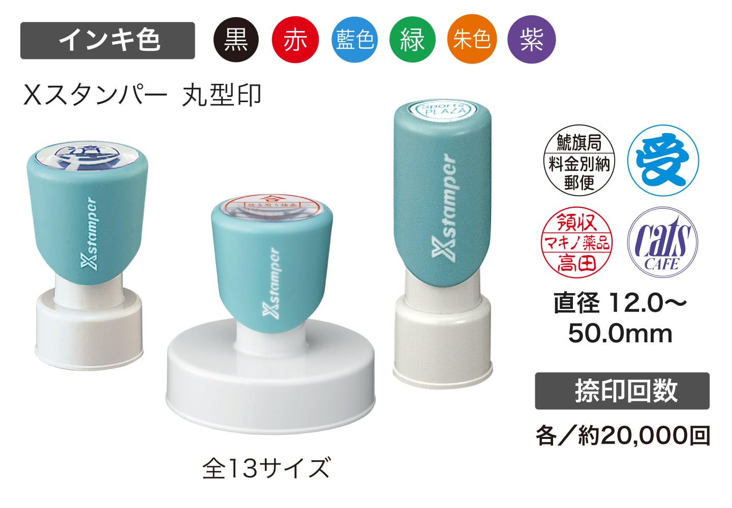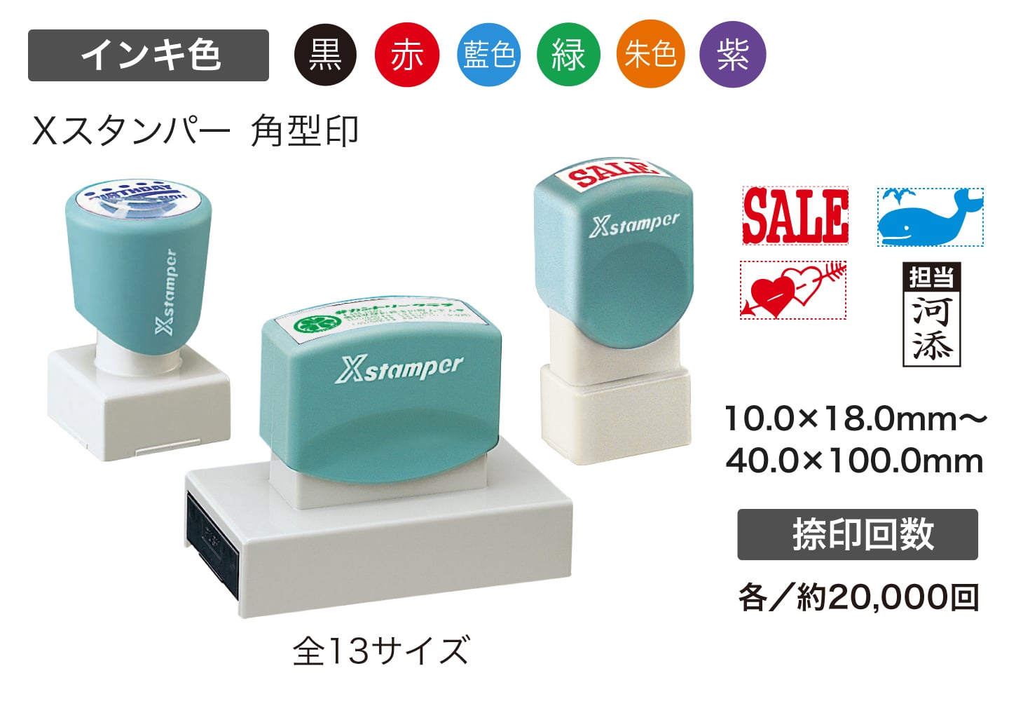 住所印や封筒のコメント表示、記念スタンプなど様々な用途に。豊富なサイズバリエーションをご用意。