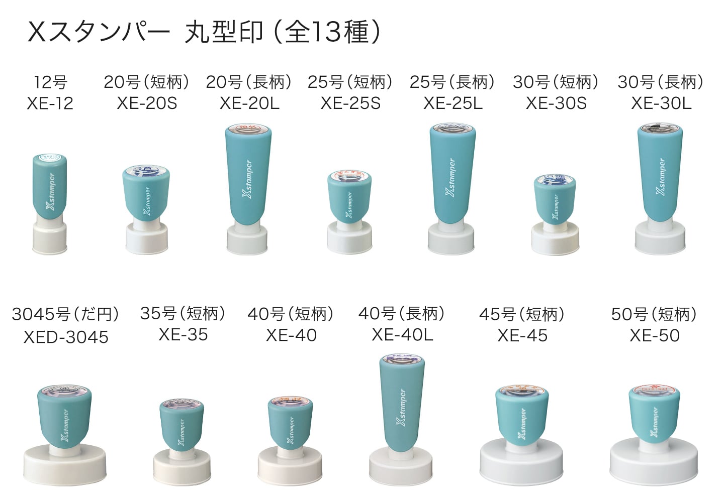 領収印や検査印、記念スタンプなど様々な用途に。豊富なサイズバリエーションに柄の長短モデルをご用意。