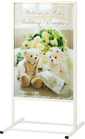 使いやすい折りたたみ自立看板。両面ともデザインが可能で、屋外でもお使いいただけます。