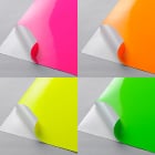 ピンク、オレンジ、イエロー、グリーンの蛍光生地から選べる屋外使用可能な蛍光ステッカーです。車のライトなどに反射する素材なので、警告や注意表示にも最適。イベントのノベルティグッズなど、目立たせたいステッカーを作りたい方にオススメです。
