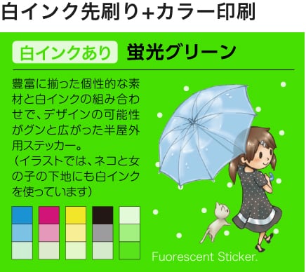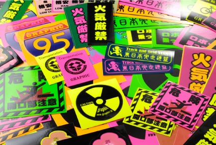 蛍光でひときわ目立つステッカー、屋外でも使える少部数対応の蛍光ステッカーです。