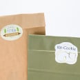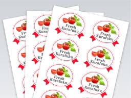 円形などの小さい容器にご使用の場合は、容器の外周よりも数ミリ程度大きなサイズでご作成いただき、シールの端と端を重ねての貼り付けをおすすめいたします。