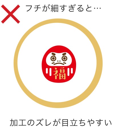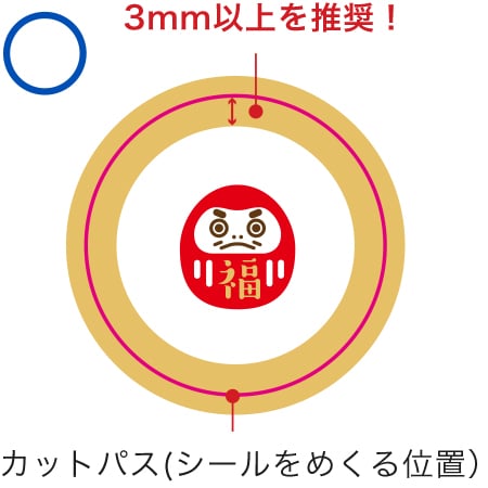 また、均等にフチを残したいデザインなどは、最低でもカットパスの内側に対して3mm以上のフチを残していただくようおすすめいたします。
