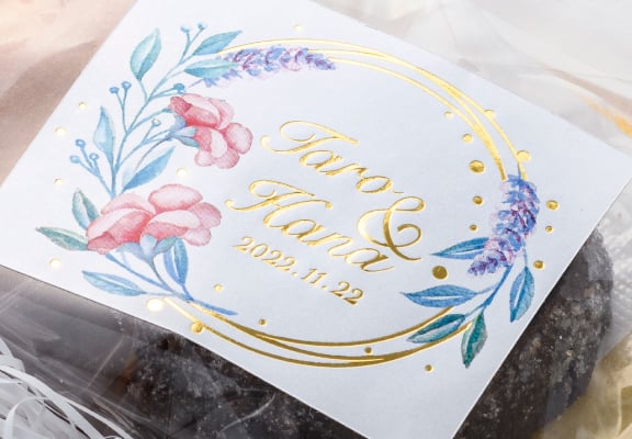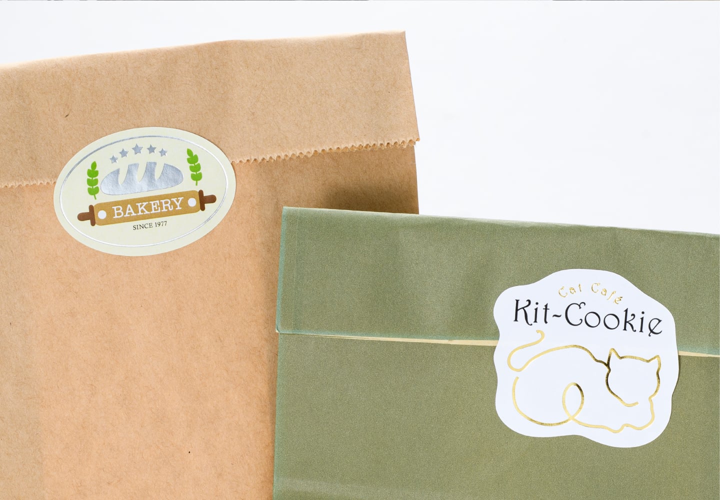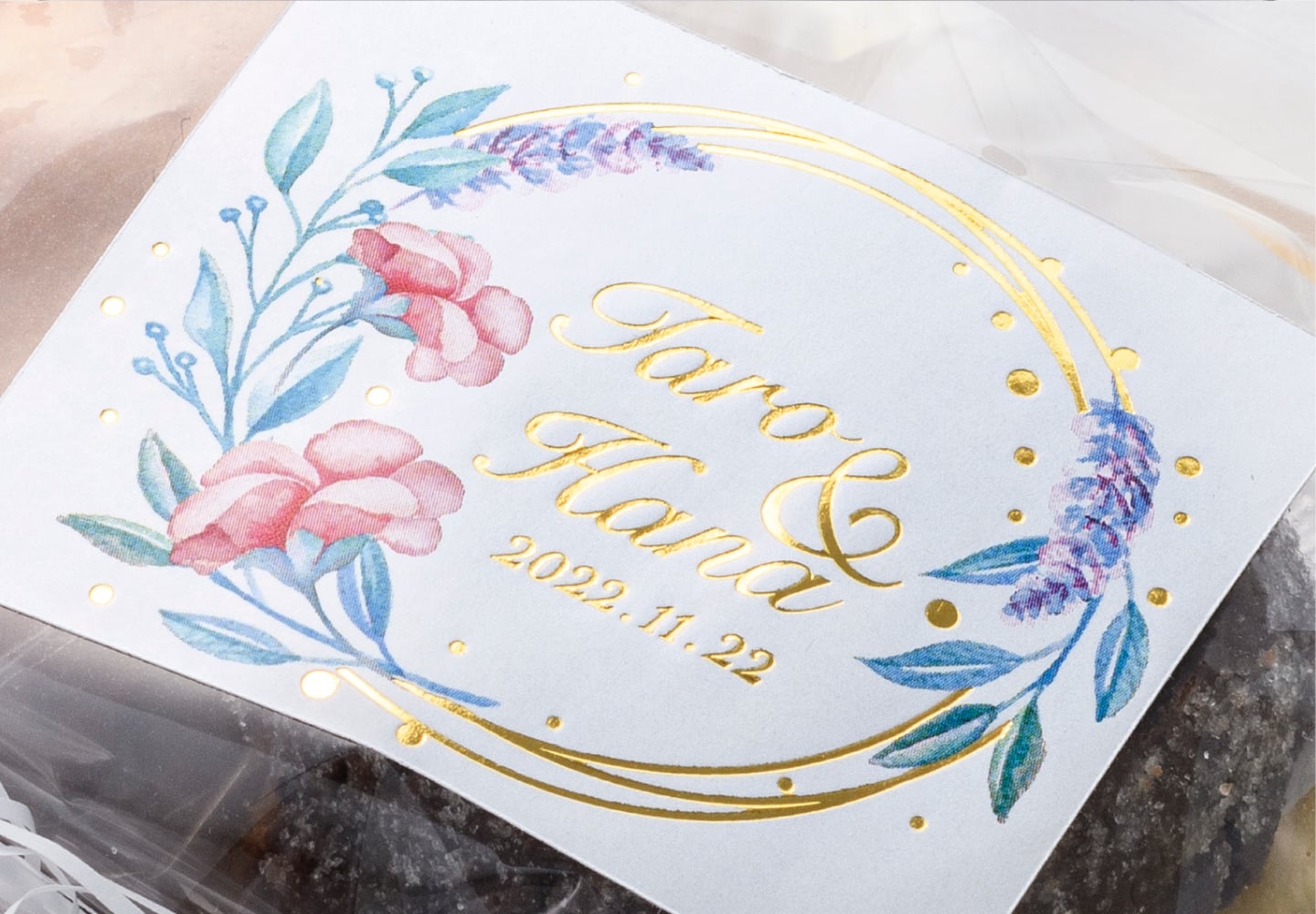 箔押し加工の光沢感を活かして、印象的なシールが作成できます。
