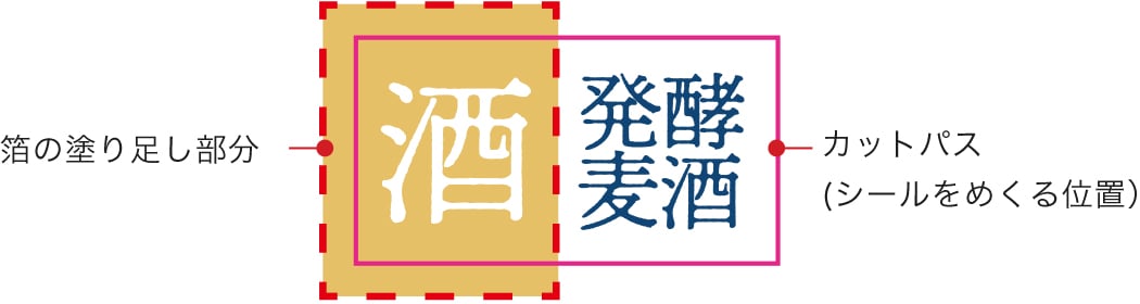 シールの端まで箔押し加工をする場合は、箔に対しても2mm以上の塗り足しを作成してください。
