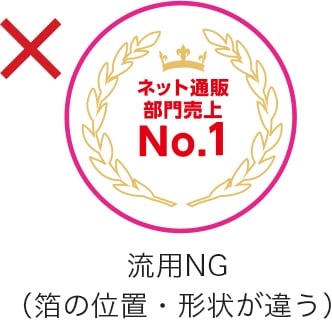 以下のNG例のように、箔押しで表現する部分と、印刷で表現する部分の境目がぴったり切り替わっていると、加工時のズレにより、印刷されていないシールの白い隙間が出てしまう可能性がございます。