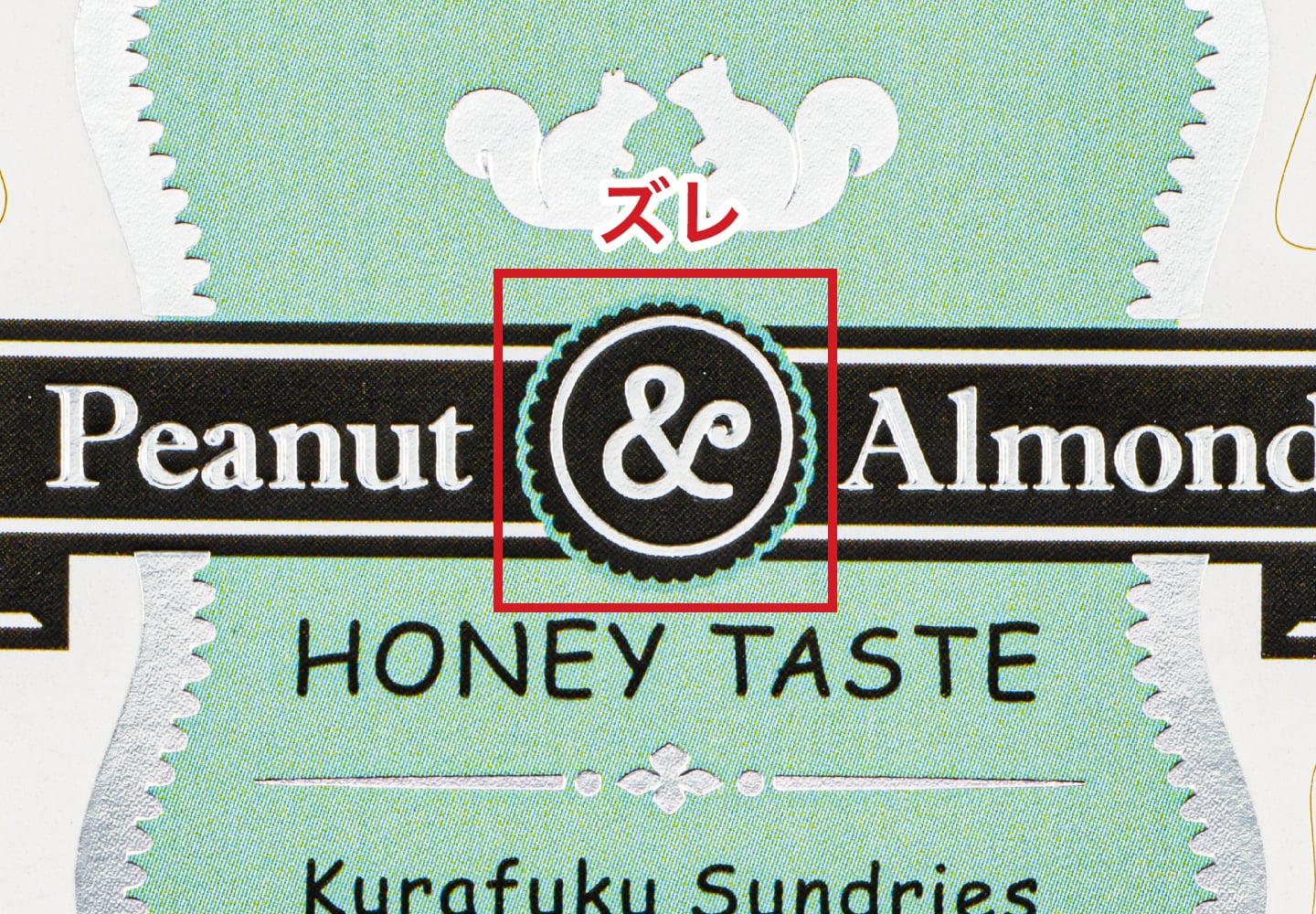 印刷の境目に箔を押すと、ズレによって紙白が隙間に出てしまいます。