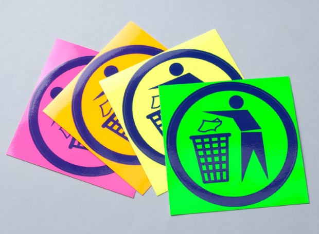 蛍光でひときわ目立つステッカー、屋外でも使える少部数対応の蛍光ステッカーです。