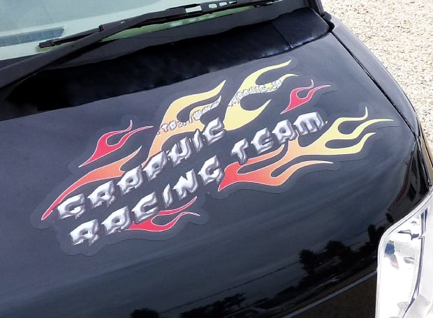 丈夫なビニール製の屋外向けステッカーです。ラミネート加工が標準仕様で耐候性抜群。
