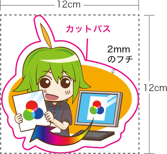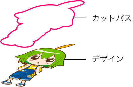 また、切れてはいけないもの(例えば文字など)はカットパスの2mm以上内側に収めてください。