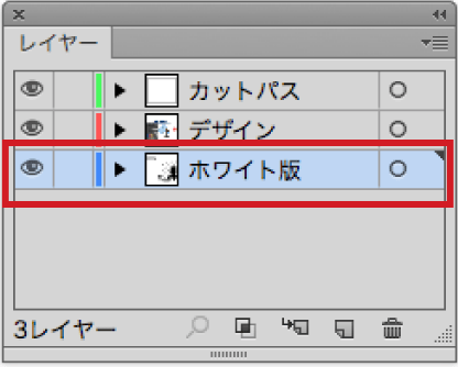 ホワイト版の印刷を行なう場合は、新規レイヤーを追加し名称を「ホワイト版」などと認識できるよう区分してください。