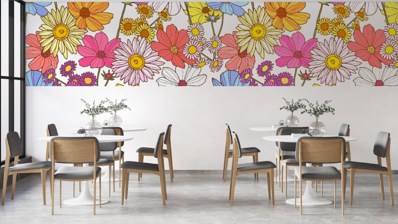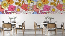 オリジナルデザインで1枚から作れます。雰囲気づくりにご活用いただけます。剥がしやすいので、短期間開催のイベントや展示会、催事のため の模様替えにもおすすめです。