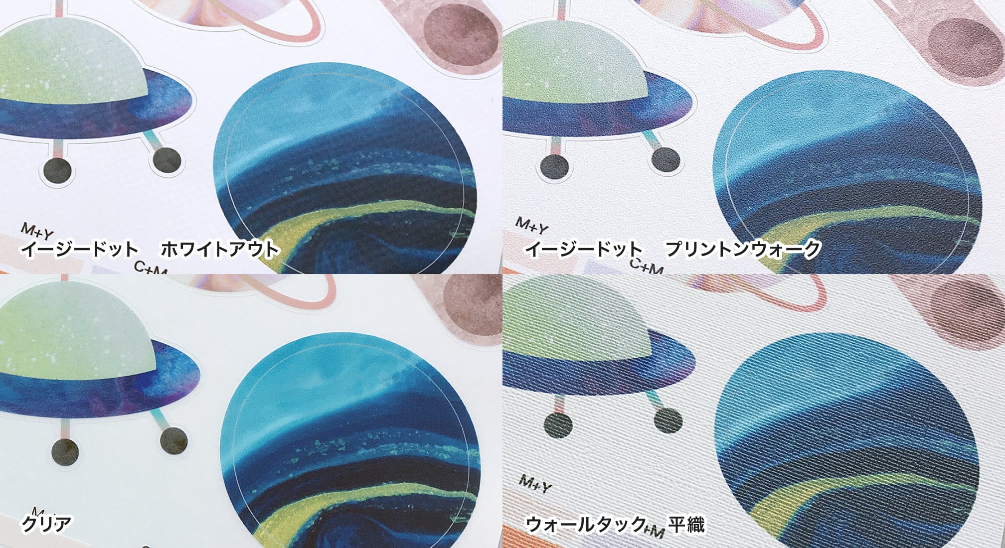 壁との相性がご不安な場合は、校正印刷で素材をご確認の上、壁の目立たない箇所でテストをいただくことをおすすめいたします。(校正印刷では、カットは行いませんのでご了承ください。)ウォールステッカーの「イージードットプリントンウォーク」と、「フロアステッカー」の違いはなんですか?