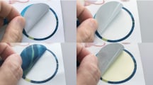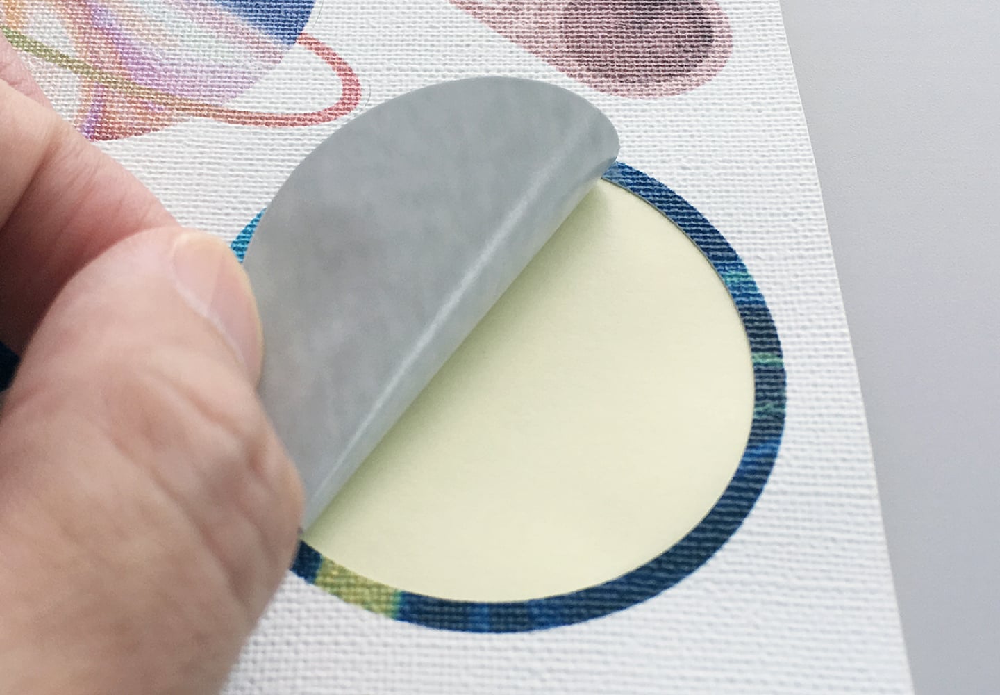 糊面がドットになっており、簡単に貼り直しができるタイプです。剥離紙の裏に「Made in Germany」と印字されています。