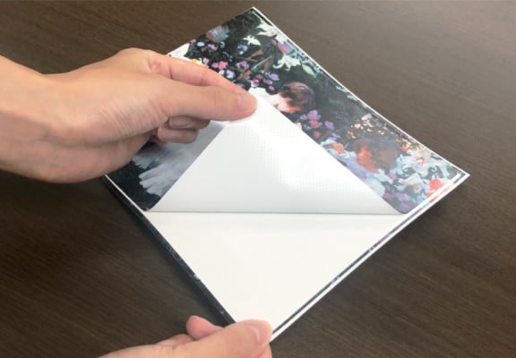 3ステッカーの端から、気泡が入らないようにゆっくり貼ってください。