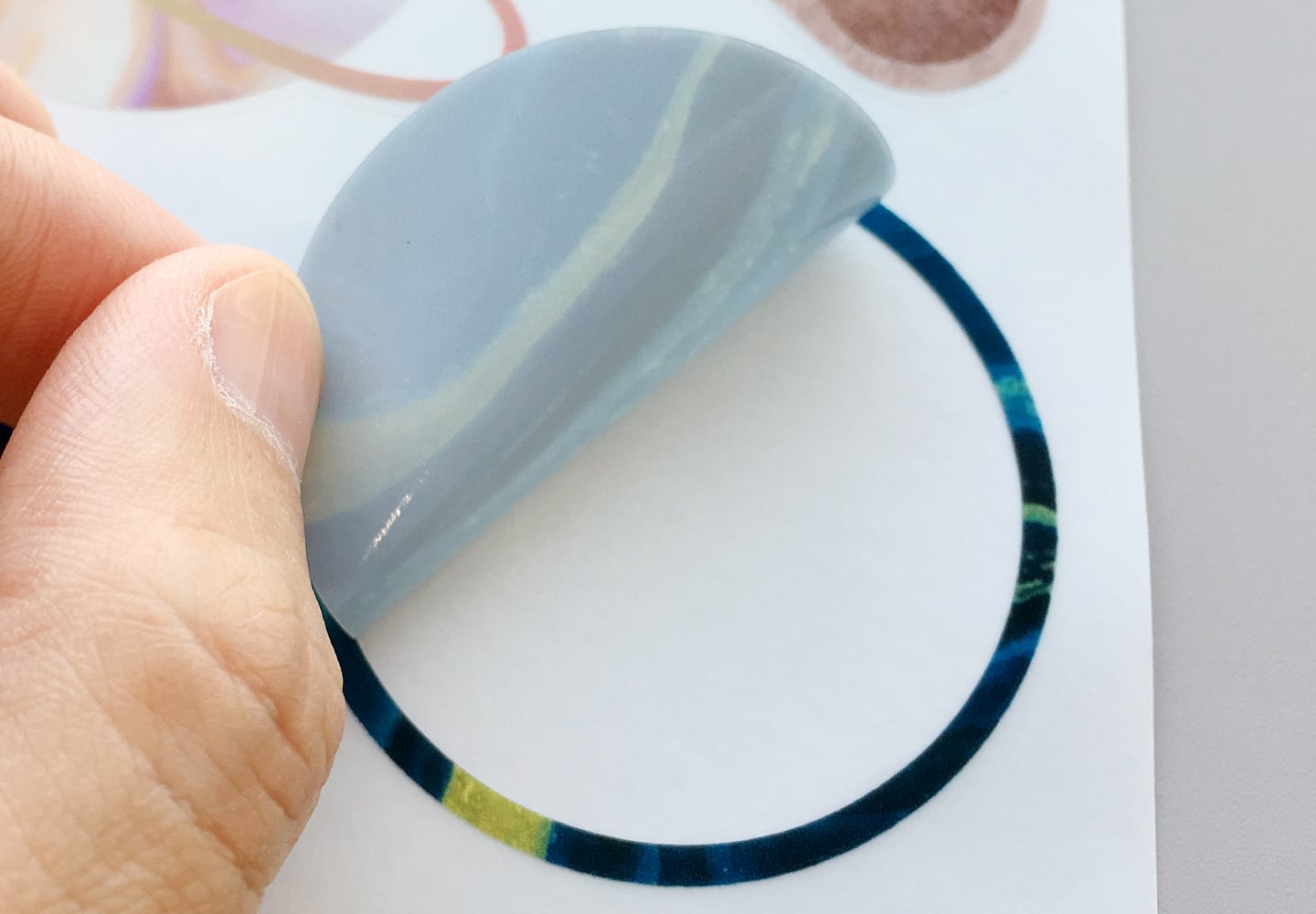 2台紙からゆっくりとステッカーを剥がします。細い部分をはがす際には、ちぎれてしまわないようにご注意ください。