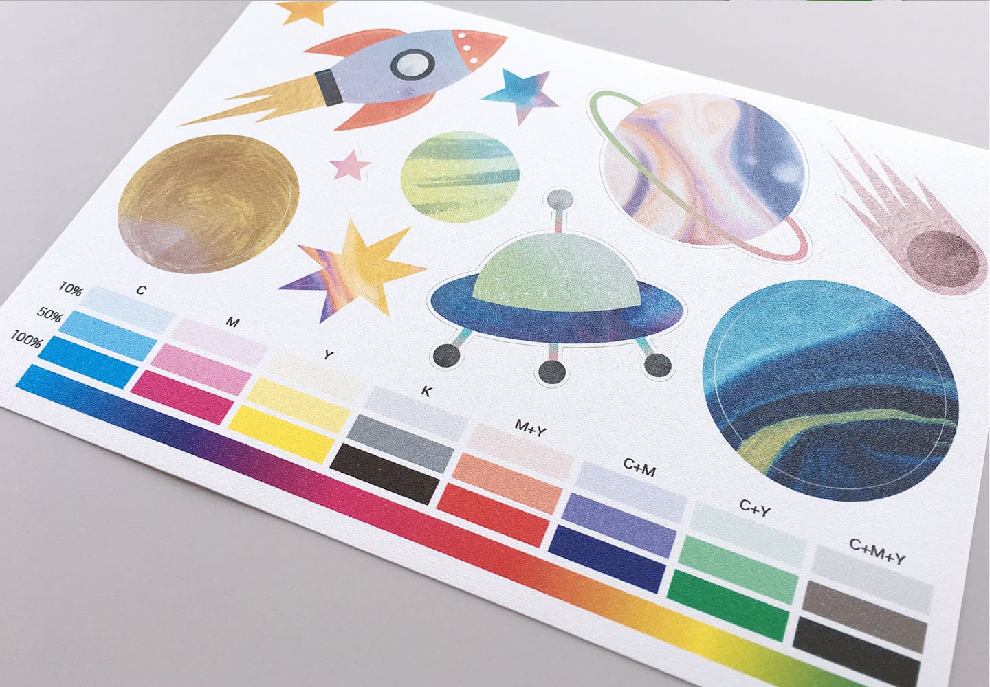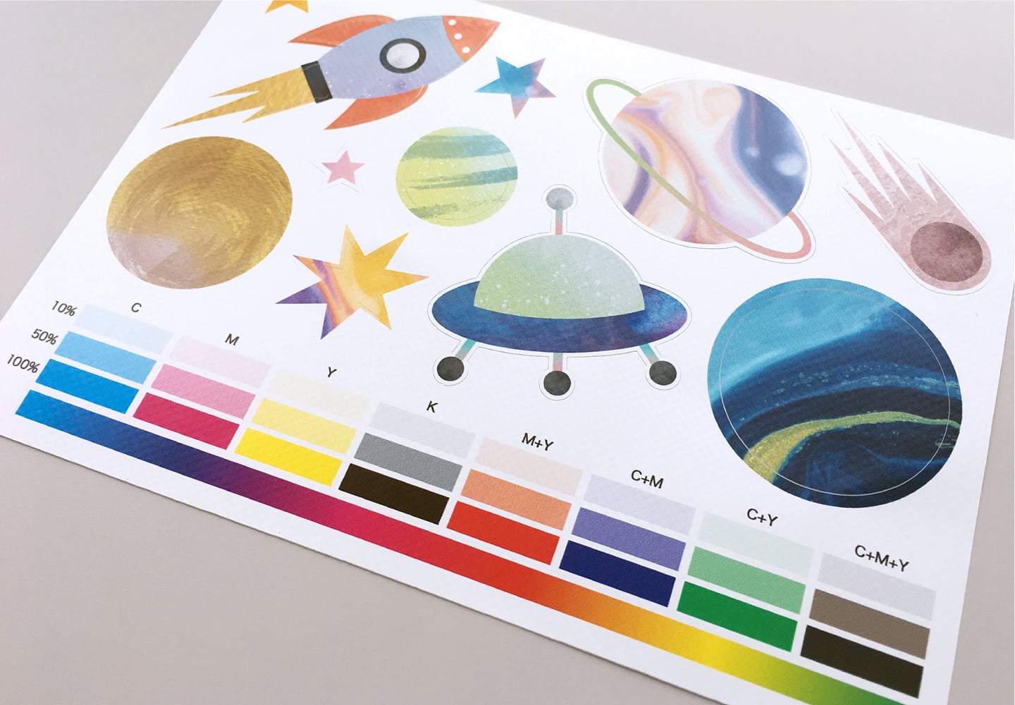 | 色校正 | 校正サービスご利用可能 オンデマンド印刷 本紙校正よりステッカー印刷用をご利用ください。ステッカー印刷の校正では色調のみの確認となり、ハーフカットは行いません。 校正の最大プリント範囲:474×306mm |