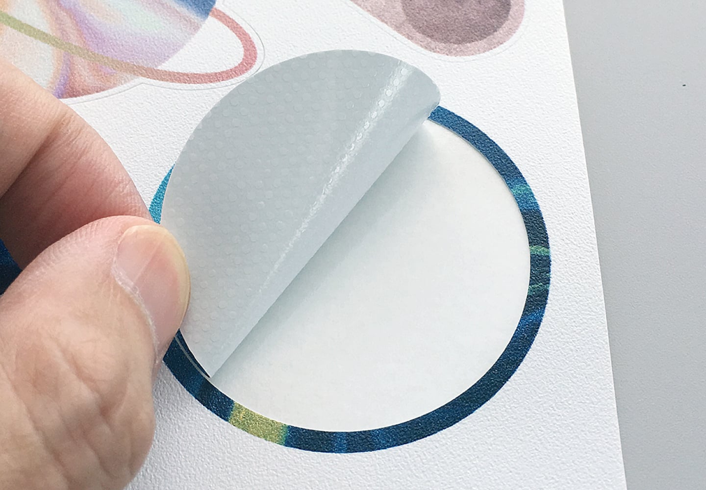 マットでややざらざらした質感が特徴的な用紙です。イージードット シリーズの中では厚みがあるため、貼りやすく剥がしやすい屋内床用のステッカーとしてもご利用いただけます。