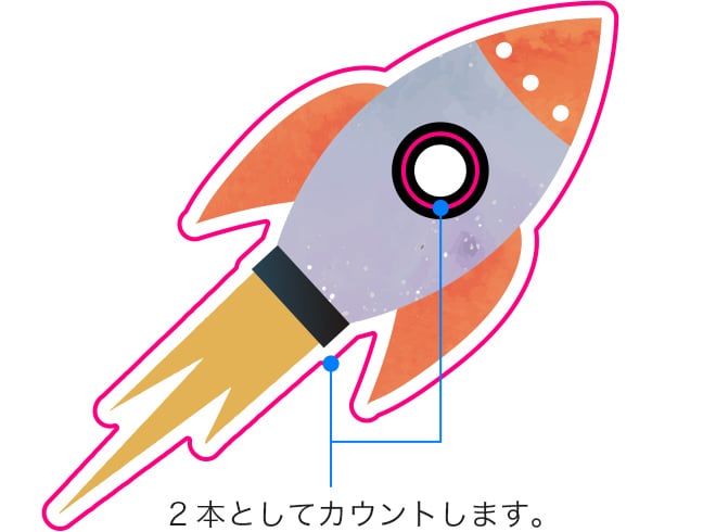 カットパスが一筆書きで作成されていない。/カットパスが複数に分かれている。