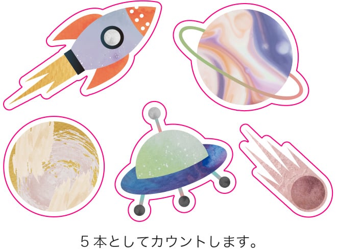 | サイズ | A5サイズ~900×3,000mm。変型サイズにも対応。 塗り足し部分は面積に含まれません。 また、サイズにより付け合わせ点数が決まっています。点数については、カットの本数ごとに1点、例えばドーナツ形状のカットなら2点と数えますのでご注意ください。規定の点数以内でご自由に配置してください。