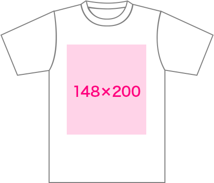 テンプレートのプリント可能範囲(テンプレートで赤い枠部分)のみプリント可能となります。プリント可能範囲内であればデザインの大きさにかかわらず料金は同一です。プリント範囲の改定をいたしました。(2025年2月変更)