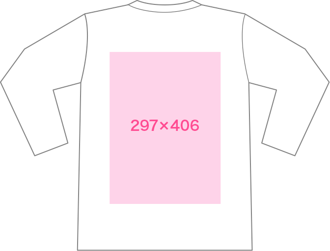 テンプレートのプリント可能範囲(テンプレートで赤い枠部分)のみプリント可能となります。プリント可能範囲内であればデザインの大きさにかかわらず料金は同一です。プリント範囲の改定をいたしました。(2025年2月変更)