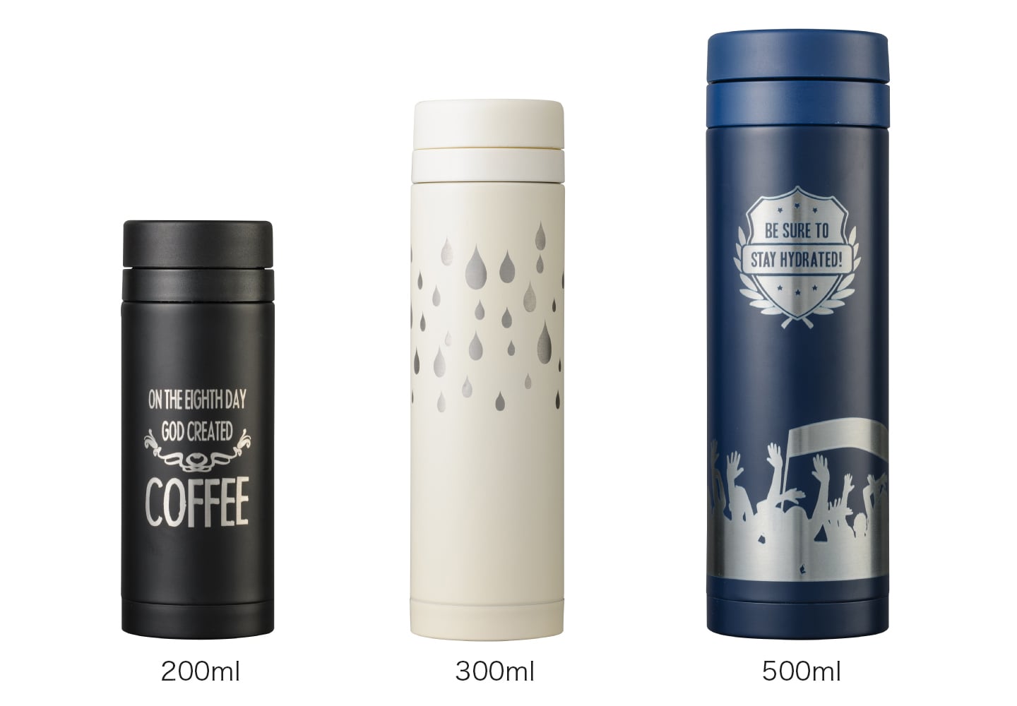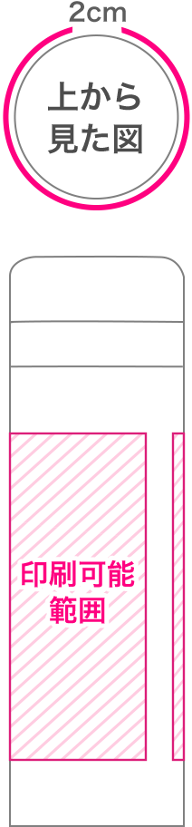 | プリント範囲 | ボトルのサイズによって、プリントできる面積が異なります。飲み口、および底からおよそ中央部分にレーザー彫刻を行います。