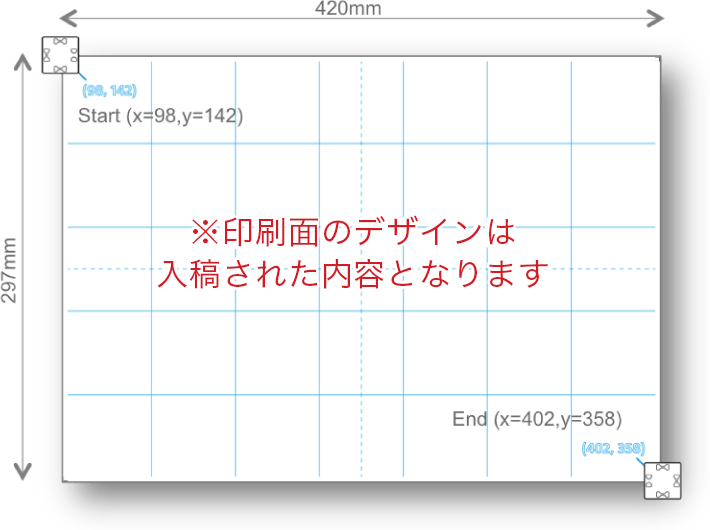 座標情報を示すグリッド線(マットタイプ)と、固有のID(カードタイプ)は印刷されません。