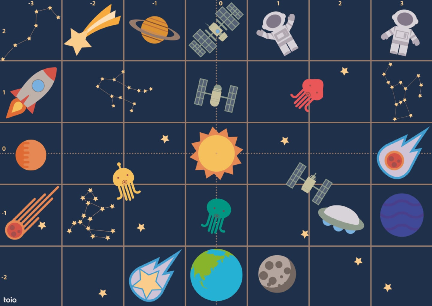 ゲーム作りやワークショップなどに汎用素材として使える宇宙をモチーフにしたtoio用マットデザイン。自分でプログラムを作って楽しめます。toio Doを使って宇宙にぴったりなあそびを作ってみよう!