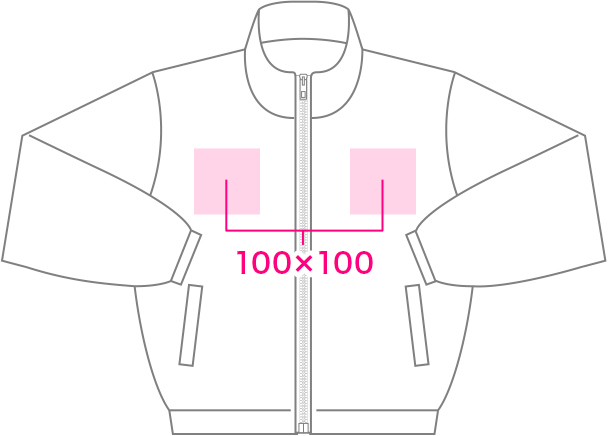 テンプレートのプリント可能範囲(テンプレートで赤い枠部分)のみプリント可能となります。プリント可能範囲内であればデザインの大きさにかかわらず料金は同一です。プリント範囲の改定をいたしました。(2025年2月変更)