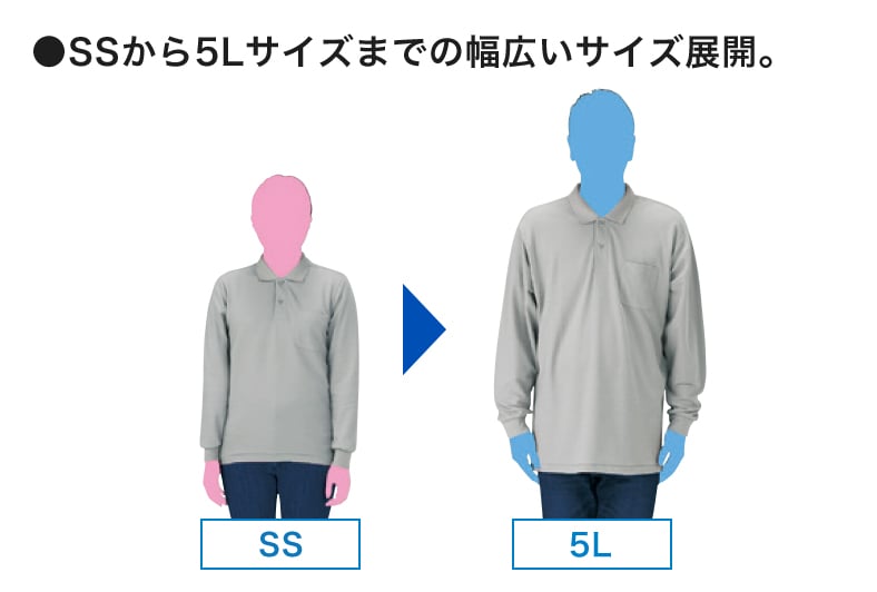 | 商品特徴 | 着る人を選ばない、定番のシルエット。季節を問わず着用いただける長袖ポロシャツは、空調の影響受ける屋内での軽作業着としてもおすすめです。 SSサイズから5Lサイズまでの幅広いサイズ展開。グラフィックの長袖ポロシャツは、SSサイズから5Lサイズまでの幅広いサイズに対応。制服やユニフォームとしてもご活用いただけます。 都合により、一部サイズ・カラーが欠品する場合がございます。ご了承ください。 ![]() ![]()