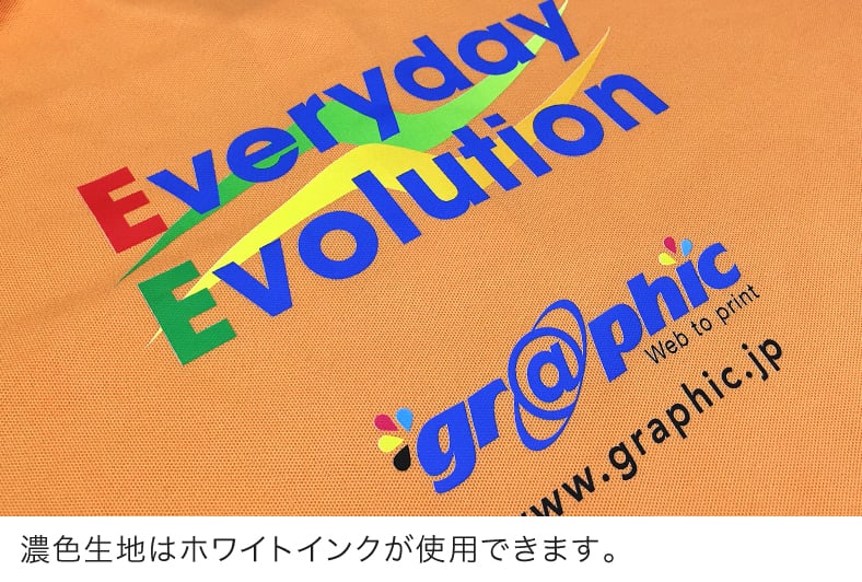 生地の色によって印刷方式が決まっており、任意で変更いただくことはできません。淡色生地は「淡色用ダイレクトインクジェット」を、濃色生地は「フィルムプリント方式」 で印刷いたします。