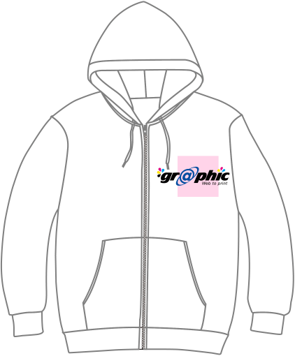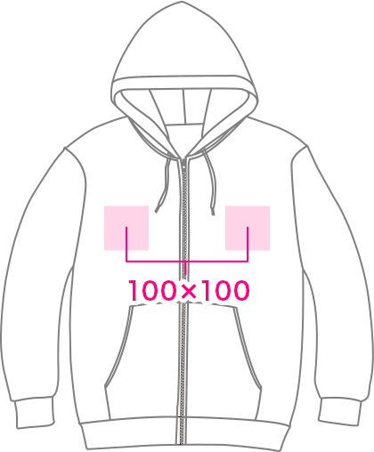 ジップパーカーのプリント範囲について。テンプレートでプリント可能範囲以外はプリントできないですか?また、デザインのサイズによって料金は変わりますか?