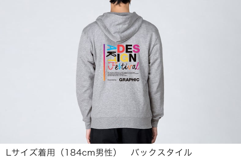 前面に大きくプリントを入れたいなら、このプルオーバーパーカー。カンガルーポケットがスポーティーな印象を与えます。