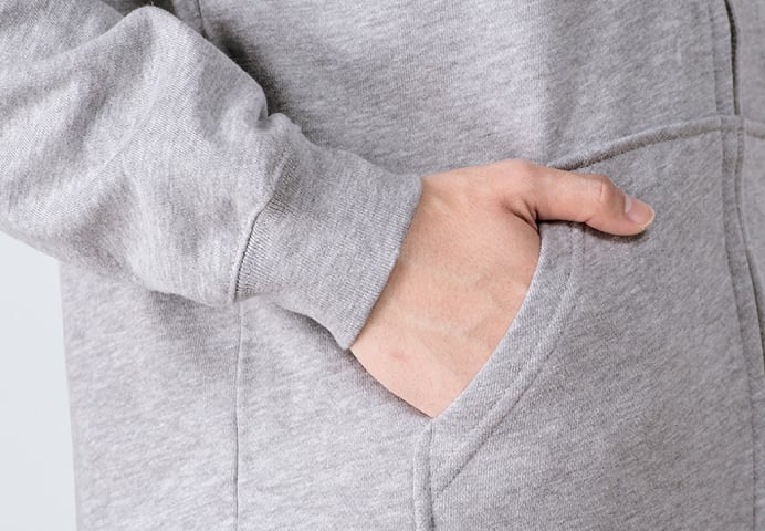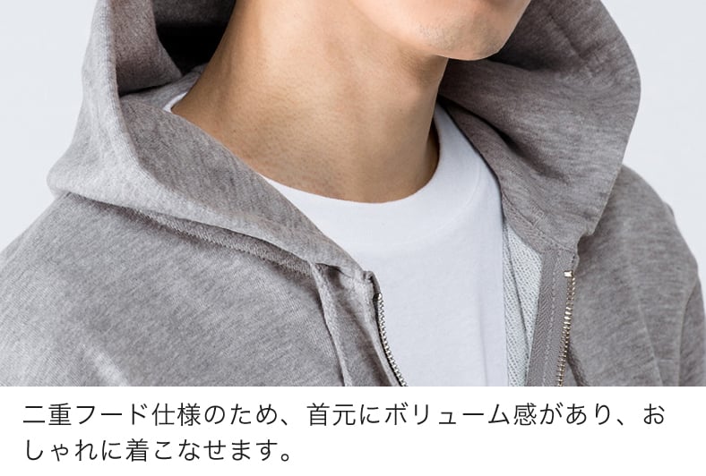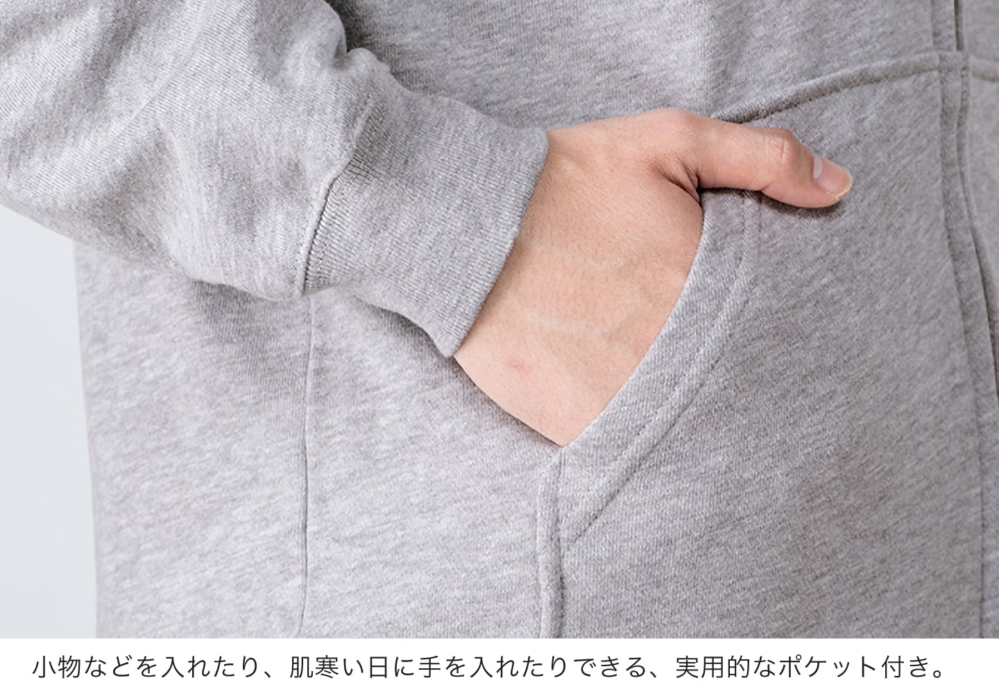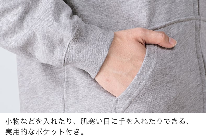 男女問わず着用できる、ジップタイプのパーカー。裏は肌触りのよいパイル地を採用し、軽くてサラッとした着心地です。一年を通して、快適に着用いただくことができます。