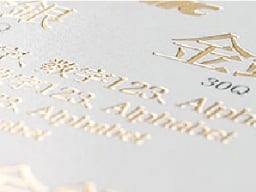 金・銀などの箔を、用紙に貼りつける加工です。金属の型を使って箔を用紙に圧着させます。