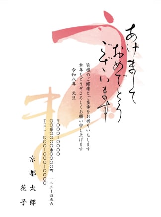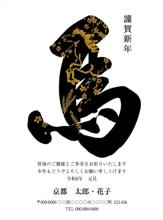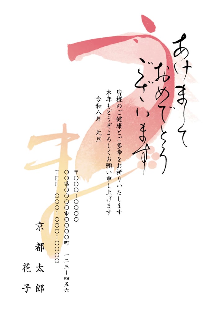 個性のある筆文字で構成されたデザイン。和の心が伝わる筆文字ならではの存在感あふれる年賀状です!